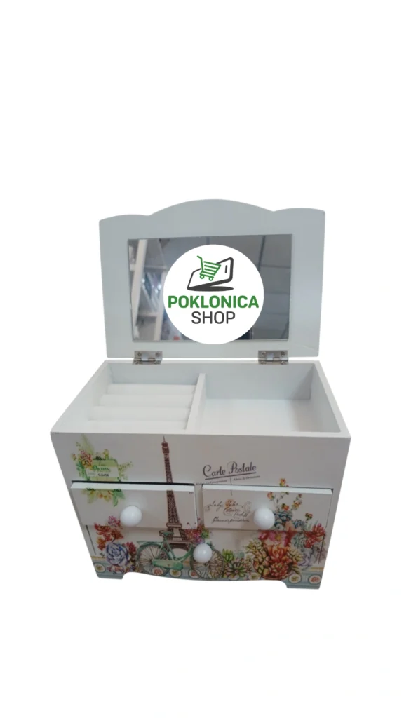 Drvena kutija za nakit sa ogledalom…
