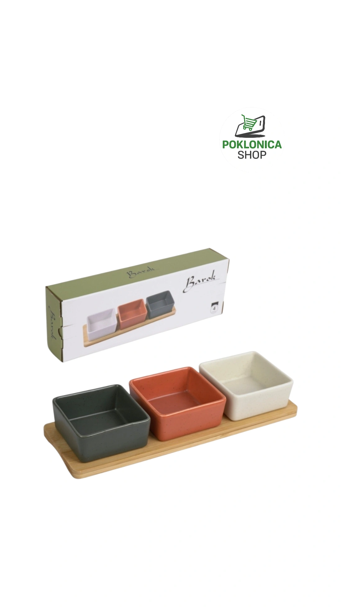 Činije četvrtaste bambus je elegantan set keramičkih posudica na bambus poslužavniku — savršen za posluživanje sosova, začina, grickalica i meza. Keramičke posudice su izrađene od kvalitetne keramike u nežnim bojama i različitim oblicima, a bambus poslužavnik daje prirodan i dekorativan izgled trpezi. Idealno za svakodnevnu upotrebu i kao poklon za domaćinstvo ili prijeme.