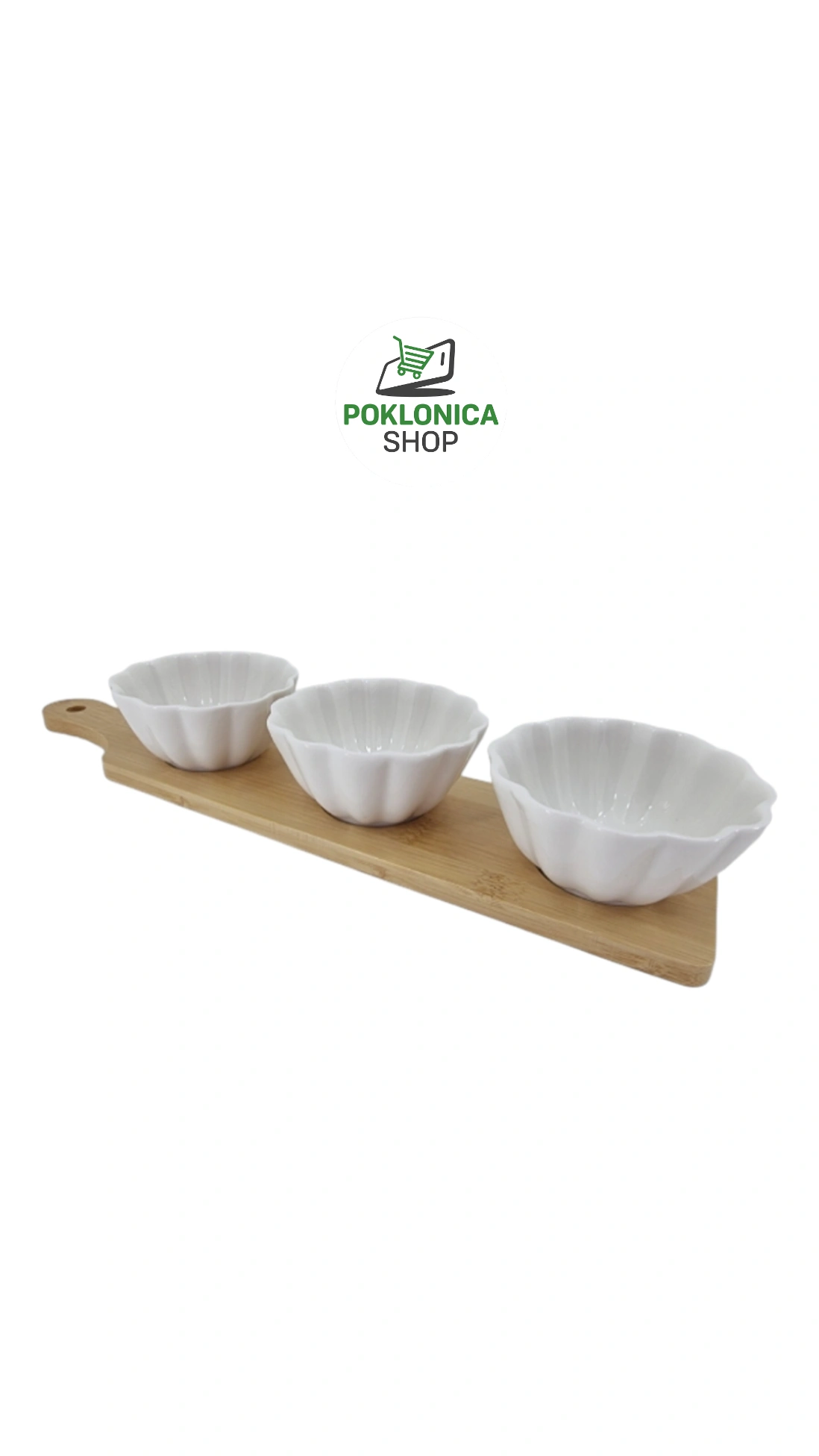 Činije na dasci su elegantne keramičke činije savršene za serviranje raznih jela ili grickalica. Njihov jedinstveni oblik, s valovitim rubovima, dodaje dašak sofisticiranosti svakom stolu. Izrađene od visokokvalitetne keramike, činije su čvrste i otporne na habanje, što ih čini idealnim za svakodnevnu upotrebu ili posebne prigode. Idealne za posluživanje porcija ili kao dekorativni elementi. Pogodne za serviranje salata, umaka ili voća. Klasična bela boja s elegantnim oblikom, lako se uklapaju u svaku kuhinju. Ove činije ne samo da su praktične, već i dodaju estetski element vašem posluženju. Idealne su za domaće zabave, porodične večere ili kao poklon. Dodajte dozu elegancije i funkcionalnosti vašem kuvanju i posluživanu s ovim predivnim činijama!