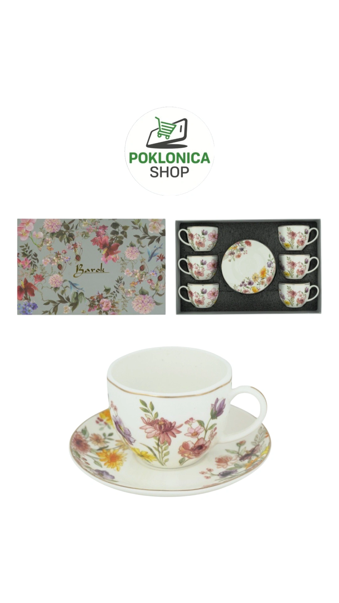 Šolje set cvetići 6/1 su elegantna kolekcija šolja sa tacnama savršena je za svakog ljubitelja kafe ili čaja. U setu se nalazi šest šolja od fine porcelanske izrade, svaka sa jedinstvenim detaljima. Visokokvalitetni porcelan, otporan na habanje i lako se čisti. Šolje imaju prelepe cvetne detalje sa delikatnim grančicama, što pruža elegantnost i savršeno se uklapa u svaku postavku. Idealne za svakodnevnu upotrebu ili posebne prilike, dodajte dašak luksuza svom stolu. Kompaktne i udobne za držanje, savršene za porcije omiljenih napitaka. Ovaj set nije samo funkcionalan, već i estetski privlačan, čineći ga savršenim poklonom za vaše voljene ili kao posebnu dodatak vašem domu. Ne propustite priliku da obogatite svoju kolekciju!