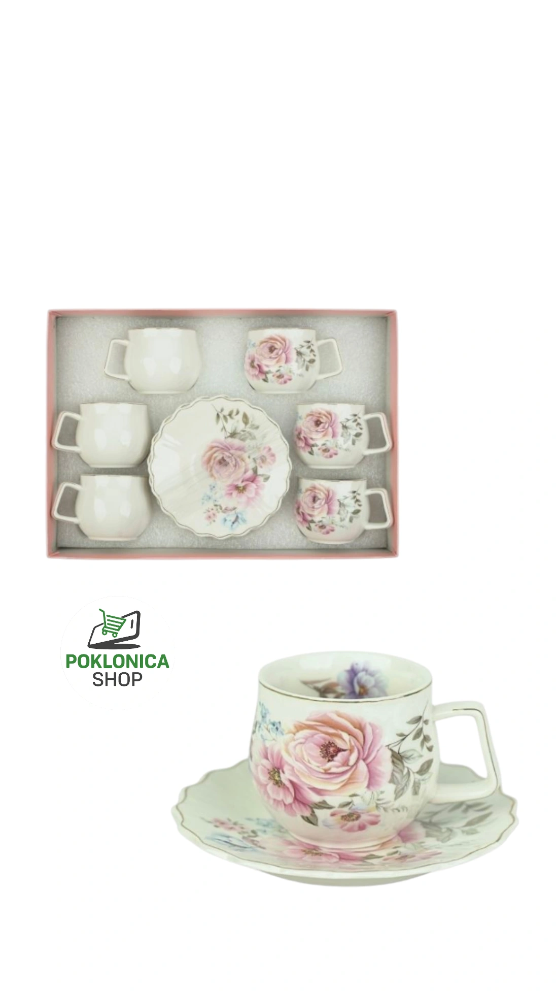 Šolje za kafu cvetne manje prelep porcelanski set šoljica sa tanjirićima ukrašen nežnim cvetnim dezenom u pastelnim tonovima, idealan za ljubitelje elegancije i klasičnog stila. Svaka šoljica i tanjirić pažljivo su izrađeni sa finim detaljima i zlatnim ivicama koje dodaju notu luksuza. Set je savršen za posluživanje kafe ili čaja, kao i za poklon dragim osobama. Dolazi upakovan u dekorativnu kutiju koja olakšava čuvanje i poklanjanje.